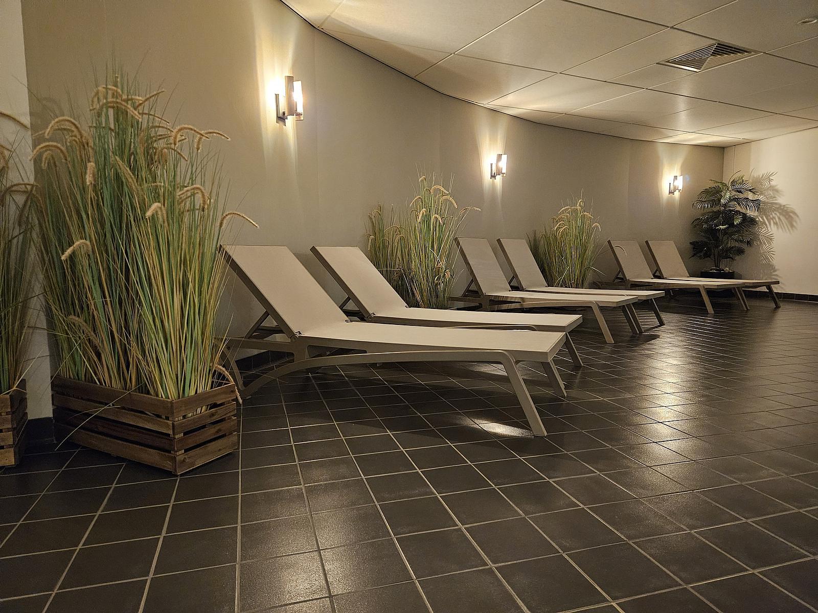 Der Ruheraum verfügt über eine angenehme und beruhigende Atmosphäre, in der Sie sich schnell zu Hause fühlen und sich optimal entspannen können. Lesen Sie ein gutes Buch, befreien Sie Ihren Geist oder träumen Sie einfach. Erleben Sie einen Moment für sich selbst und nehmen Sie Platz in einer der komfortablen Liegen bei angenehmen Temperaturen.